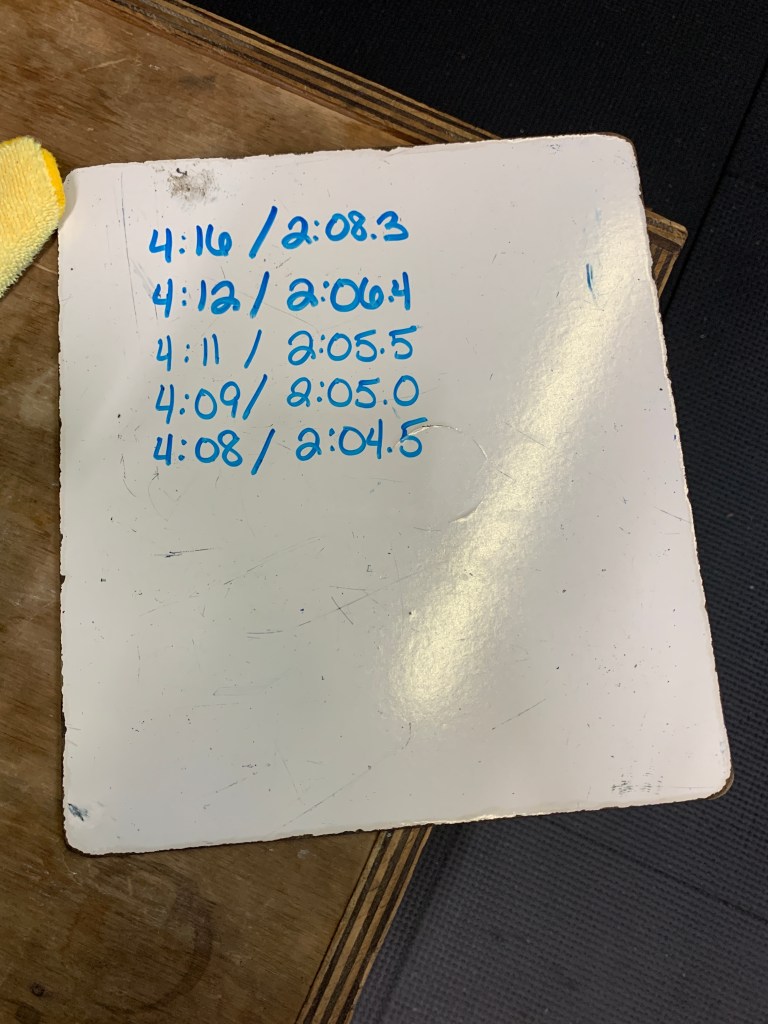 = numbers below. While I was doing this it felt like an appropriate pace – felt tough but sustainable. But I was recovering fairly quickly and my HR wasn’t getting very high so wondering if I could have pushed this a bit harder – definitely could have stuck closer to the 2:05 ish pace for all sets.