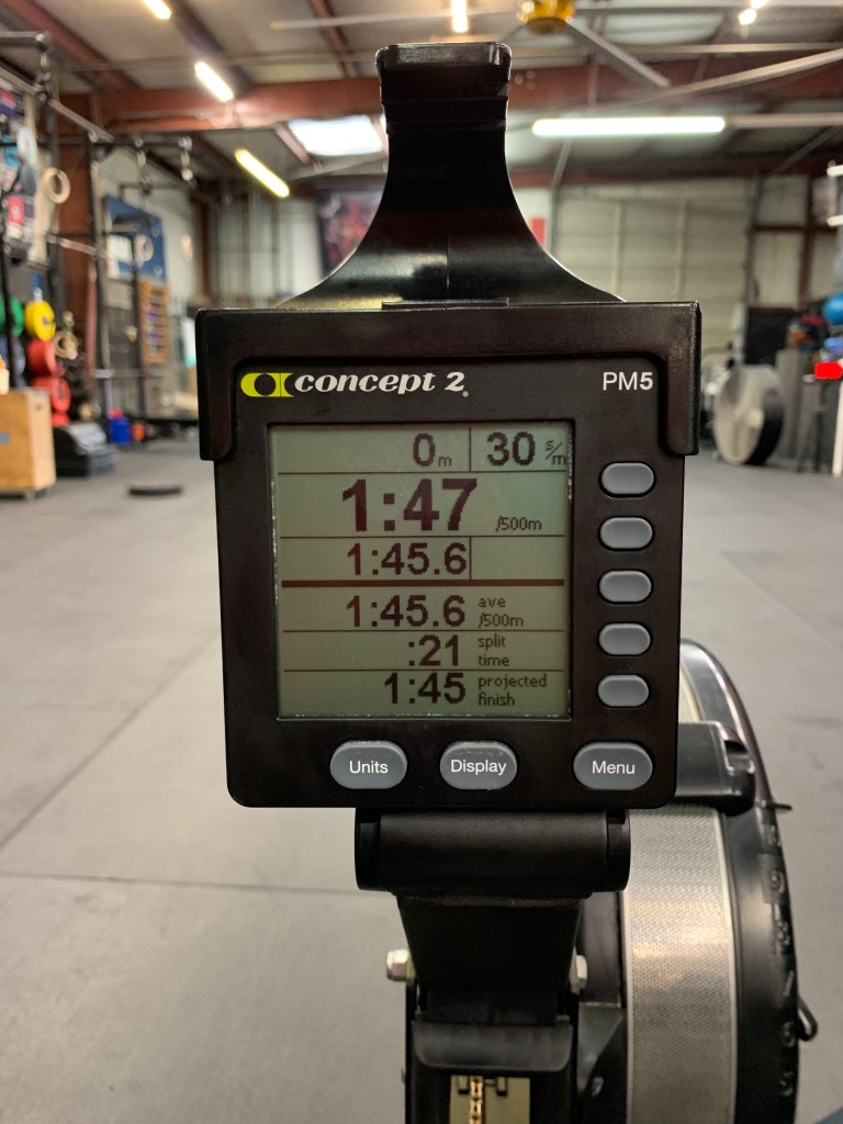 Started out pulling 1:41 and kept it through 200-300m then tried to push pace and wasn’t able to get it significantly faster and then around 150m remaining it started to slow to between 1:44-1:48. I completely emptied tank and just did not have anything left in the last 200m to go any faster.